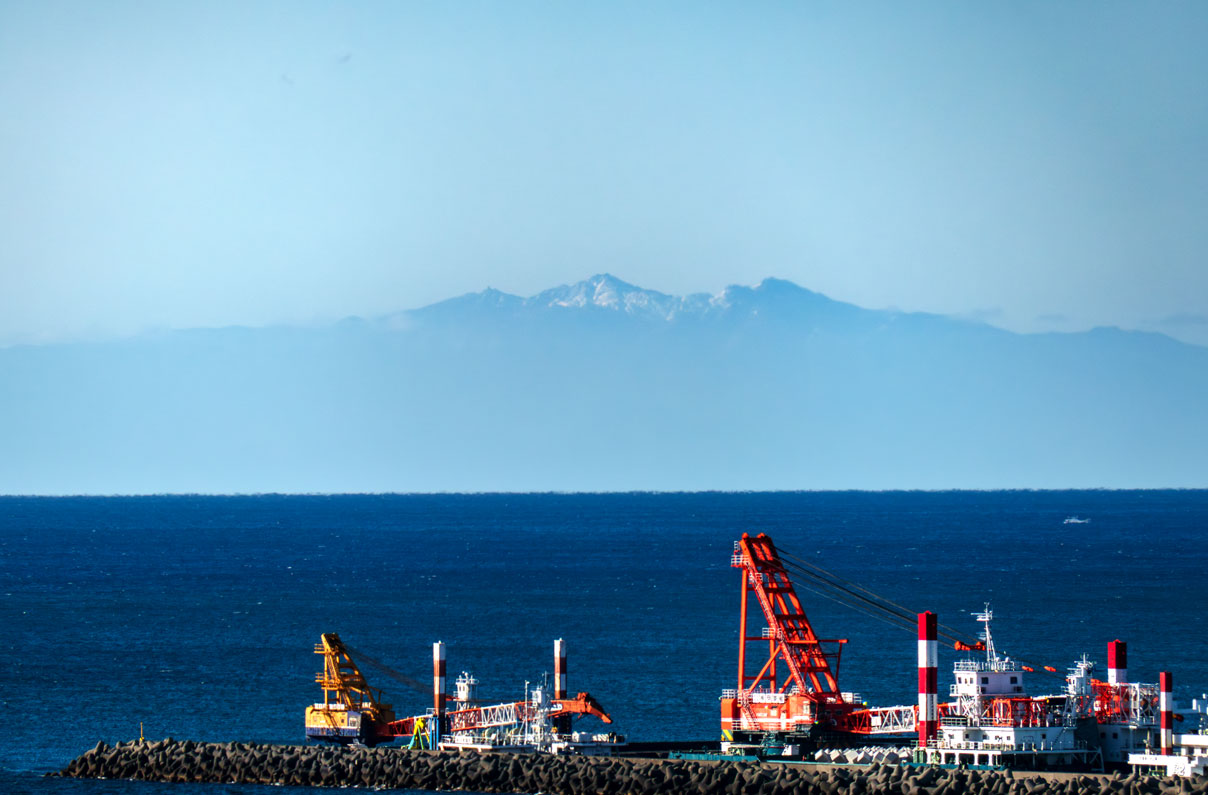 この日はとても天気が良く、空気も澄んでいたようで、鹿児島湾の南に屋久島の姿をうっすらと見ることができた。